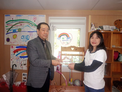 The generous donation of 250,000 Japanese Yen, collected during the 11th Circle Wind Concert, was personally delivered to Ms. Shimura, President of the Kokoro Smile Project, situated in the Hebita district of Ishinomaki, Miyagi, on October 16, 2018. This amount, equivalent to $1,154, primarily comprises contributions from the attentive audience of the 9.12 concert, supplemented by additional funds matched by the NPO Circle Wind Memorial Concert. Shirota visited Kokoro Smile on October 16th in Ishinomaki and directly delivered 250,000 Japanese Yen to Ms. Shimura to support their grief-care activities for children and mothers who lost their families. The donation, primarily raised during the 11th Circle Wind Concert, symbolizes a heartfelt commitment to the healing journey of those affected by the tragedies.