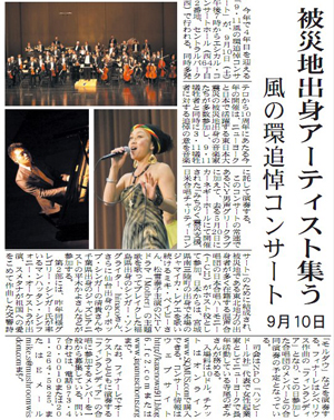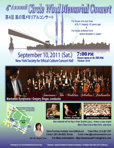The Circle Wind Memorial Concert, originally conceived to commemorate 9/11 victims, now extends its role to include a tribute to those affected by the 3.11 earthquake and tsunami. The concert aims to provide a healing experience through beautiful music, featuring renowned artists, including those from the quake-affected areas.